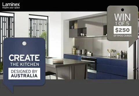 It was a facebook competition, proclaiming the winner's kitchen will be “designed by Australia”. Sounds like fun, but how does that work, you say? Well, the facebook community had to vote on several Laminex colour combinations for the kitchen cupboards, benchtop and splashback. The “design” was something I worked on with Emma and her family but the colour choices were completely out of our hands.